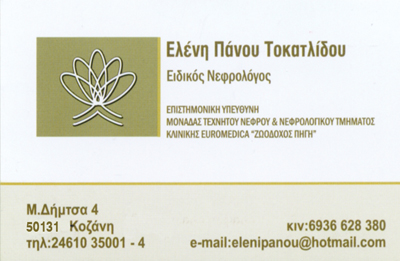 customer tabsΕπικοινωνίαΕιδική ΝεφρολόγοςΕπιστημονική Υπεύθυνη Μονάδα τεχνητού νεφρού &Νεφρολογικού Τμήματος Κλινικής EUROMEDICAΔέχεται με ραντεβού2ο Ιατρείο: Κελετρού 33, Καστοριά τηλ: 2467026814 ΝεφρολόγοιΥγείαΔήμτσα Μαργαρίτη 4, ΚοζάνηΚΟΖΑΝΗΜΑΚΕΔΟΝΙΑ 2461035001Euromedica 6936628380elenipanou@hotmail.com Το προτείνω (έχει προταθεί 0 φορές) ΦωτογραφίεςFacebook LikeShare on FacebookTweet Widget